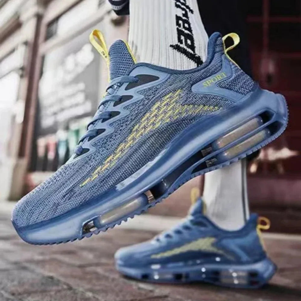 Deze sportschoenen zijn uitgerust met een volledige luchtkussenzool voor optimale schokabsorptie en stabiliteit. Het ademende canvas bovenwerk zorgt voor ventilatie, terwijl de antislipzool grip biedt op diverse ondergronden.
