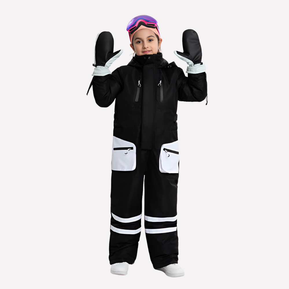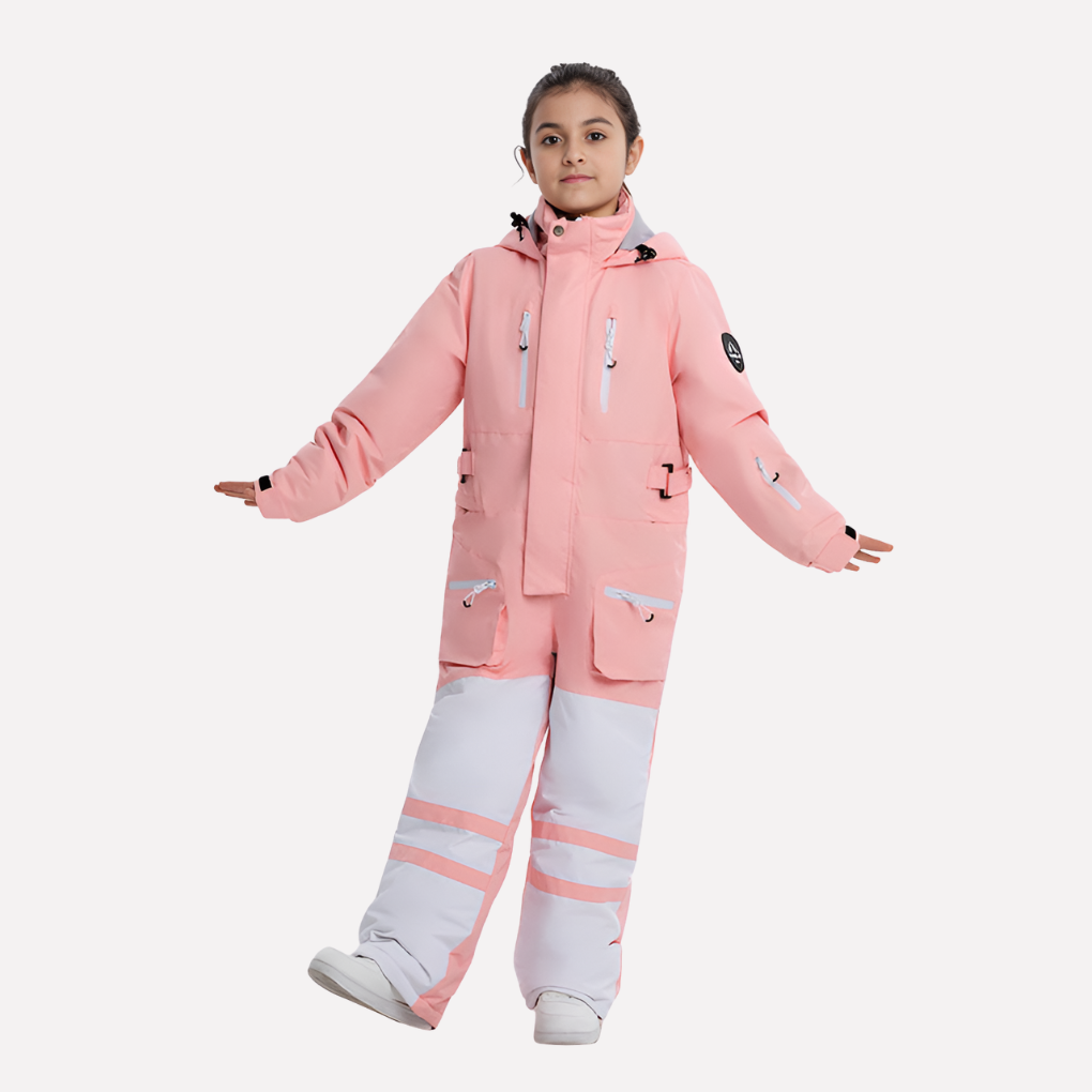 Dit unisex skipak uit één stuk voor kinderen biedt volledige lichaamsbedekking en is ontworpen om winterse spelletjes en sneeuwactiviteiten te ondersteunen. Het geïntegreerde ontwerp is goed te combineren met thermokleding en zorgt voor een complete outfit op koude dagen. Functionele elementen zoals veilige opbergruimte, verstelbare openingen en ventilatieopeningen maken sneeuwpret en buitenplezier in koude omstandigheden extra comfortabel.